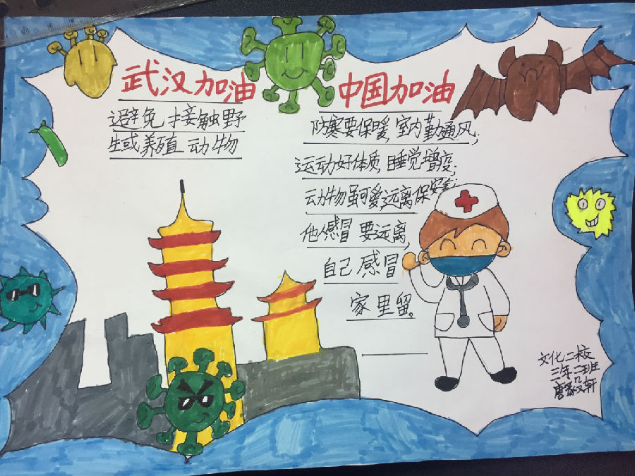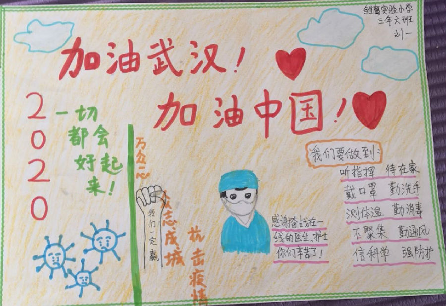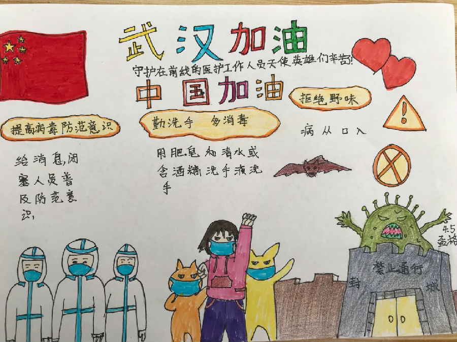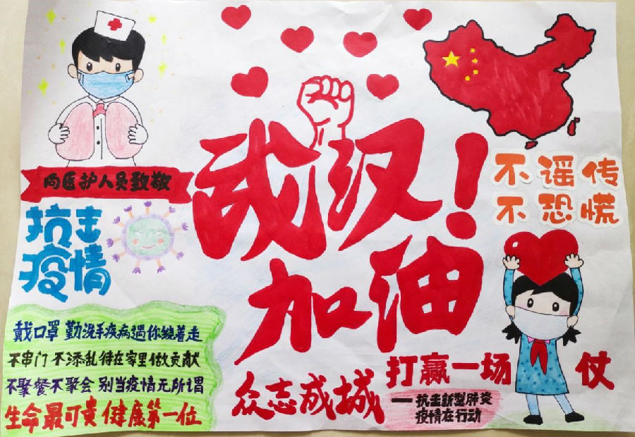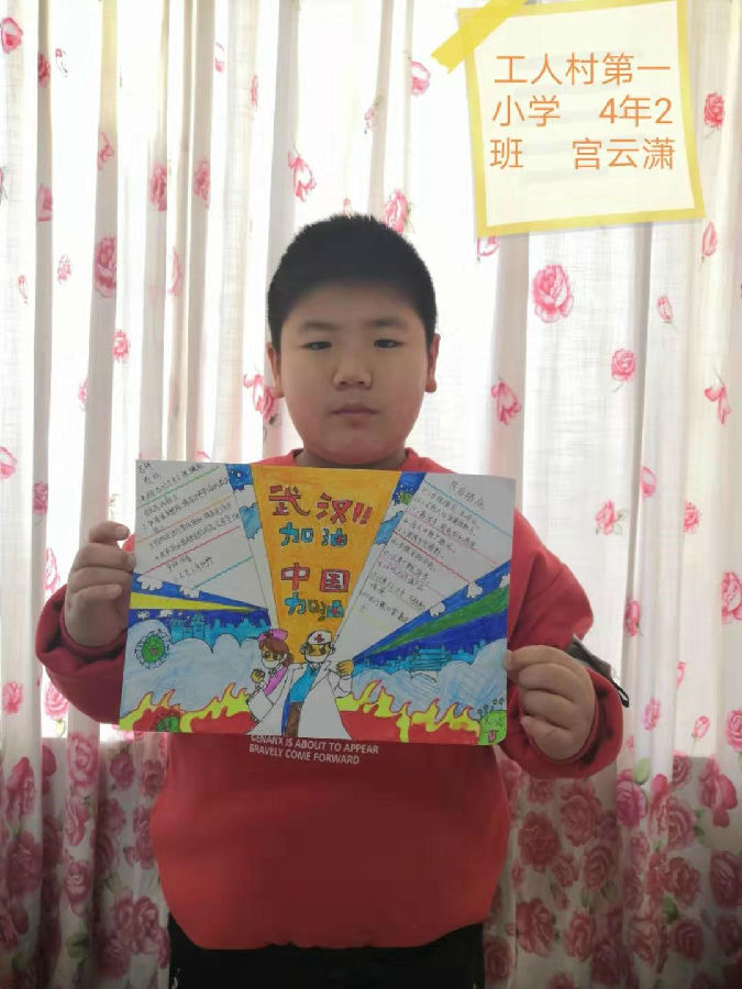沈阳小朋友们在“抗疫情 宅生活”网络创意大赛中用自己的作品为战斗在一线的英雄们、在各自岗位上的坚守者以及与病魔战斗的每一位患者,送上祝福。武汉加油,中国加油。
